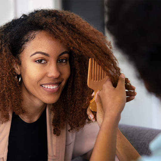 Time to glorify your lovely curls with our Natural Curly Hair Shampoo Blowout Style, aka the Silk Press. We’ll clean, condition, and style your curls to ideal, giving you smooth, shiny locks that grab the attention of others wherever you go.
